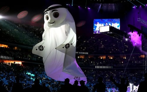 - Ed ecco infine apparire La'eeb, una sorta di kefiah volante, con occhi e bocca, la mascotte di Qatar 2022.