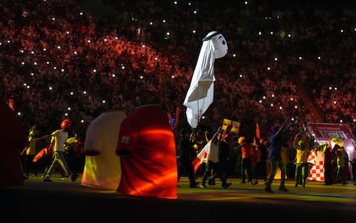 Uno show con luci, bandiere, mascotte del presente e del passato, e un ospite d’eccezione, Morgan Freeman, che ha fatto da narratore della cerimonia di inaugurazione del Mondiale in Qatar, parlando di rispetto e inclusione. Presente anche un po' di Italia, nello spettacolo all'Al-Bayt
