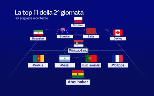 Ecco la top 11 della seconda giornata dei gironi del Mondiale in Qatar scelta dalla redazione di Sky Sport. Con Leo Messi anche due protagonisti della Serie A e un centravanti assolutamente a sorpresa...