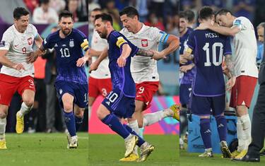 - Uno scatto d'orgoglio del capitano della Polonia, però, lo porta a fronteggiare Messi a centrocampo, cercando di fermarlo