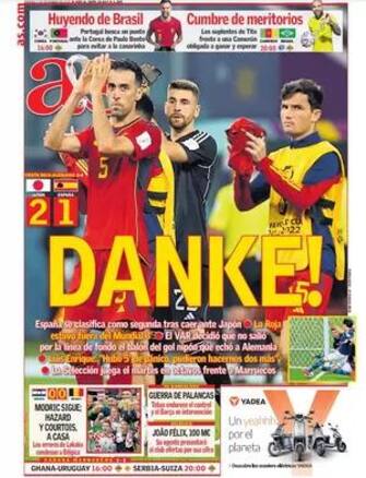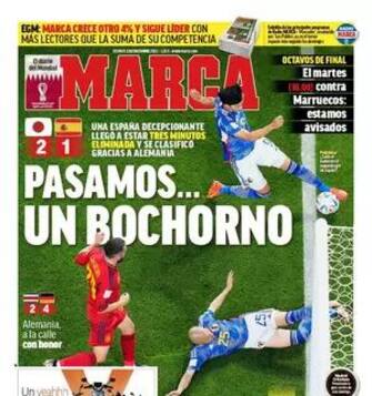 - "La Spagna passa con imbarazzo... grazie alla Germania", si legge sulla prima pagina del quotodiano spagnolo.
