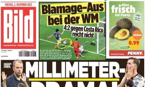 - Il quotdiano tedesco parla di "Dramma millimetrico" con il riferimento al secondo gol del Giappone contro la Spagna e al pallone che avrebbe superato la linea di fondo in occasione del 2-1.