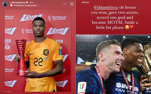 - Dopo una partita del genere, chi non sprizzerebbe gioia da tutti i pori? Lui. Come gli fa notare il suo compagno di squadra nell'Inter, Robin Gosens, commentando la foto che lo ritrae con il premio di migliore in campo