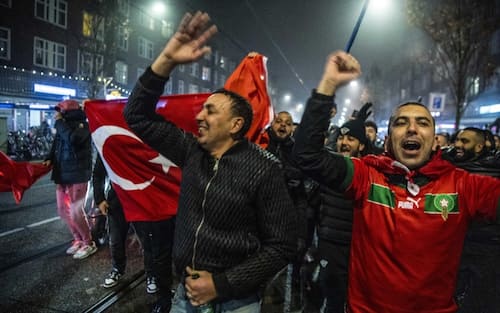 - Gioia anche per la comunità marocchina ad Amsterdam. Qui siamo al Mercatorplein dove è spuntata anche una bandiera della Turchia