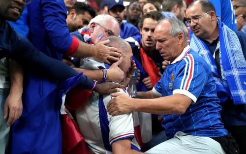 - L'uomo, un tifoso francese, è rimasto stordito dalla forte pallonata rimediata in volto