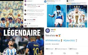 Una partita dalle mille emozioni, il sogno realizzato da Messi da una parte, la tripletta di Mbappé dall'altra. Uno show che ha sbalordito appassionati e non: in tanti si sono congratulati con l'Argentina per la vittoria Mondiale, compresi rivali brasiliani, ex stelle del calcio, attori e campioni di altri sport. Ecco le reazioni al successo dell'Albiceleste