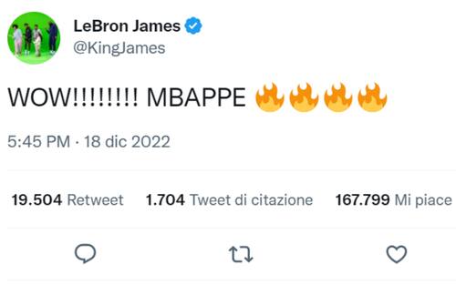 - LeBron, invece, è rimasto sbalordito dalla tripletta di Mbappé. Ma...