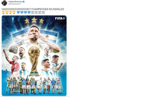 - Tutta la gioia di un argentino, Batistuta, che ha segnato tanti gol con la maglia della Nazionale, senza tuttavia riuscire a vincere. Ora la gioia può esplodere
