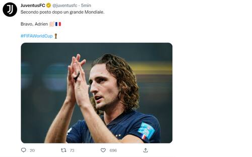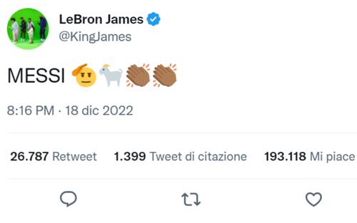 - Sono arrivati anche i complimenti di Roger Federer: "La favola dell'Argentina. Per l'ennesima volta, tu, Leo Messi, hai definito il concetto di grandezza. Guardarti è stato un privilegio".