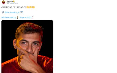 - Altro campione del mondo, in gol dal dischetto nella lotteria finale: la Roma si congratula con Dybala