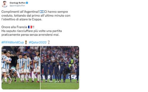 - Da campioni del mondo a campioni del mondo: i complimenti di Gigi Buffon all'Argentina, ma applausi anche per i francesi
