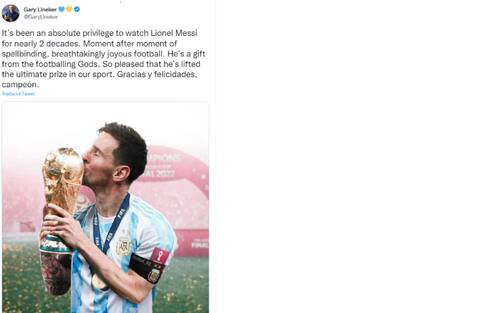 - "È stato un privilegio vedere Messi per quasi due decadi" afferma Gary Lineker, ex centravanti inglese