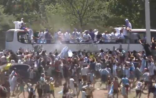 - Fiumane di persone accolgono il passaggio del bus dei giocatori ai bordi delle strade periferiche di Buenos Aires