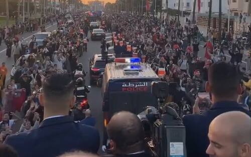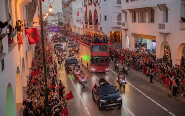 Entusiasmo e marea umana per i Leoni dell'Atlante che tornano nel proprio Paese dopo lo storico quarto posto ai Mondiali in Qatar. Sono 8mila i poliziotti schierati su un percorso di 5 km nelle strade della capitale. Dopo il tour per salutare le migliaia di tifosi, Hakimi e compagni sono attesi a palazzo reale, invitati a cena da Re Mohammed VI