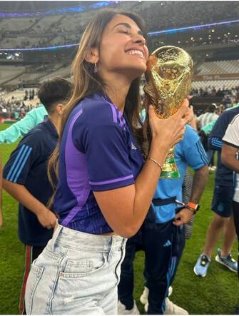 Grande gioia anche per le dolci metà dei giocatori campioni del mondo in Qatar. Dalla moglie di Leo Messi alle fidanzate di Lautaro Martinez e Dybala, ecco gli scatti più belli e emozionanti degli 'eroi' argentini insieme alle loro splendide compagne