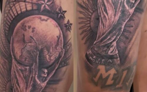 - Dei dettagli del tatuaggio di Di Maria, la Coppa del Mondo posata sulla bandiera argentina, con tre stelle sopra, l'ultima quella conquistata in Qatar. "Sulla mia pelle per l'eternità - ha scritto il 'Fideo' -, grazie mille amico!". Poi, sotto la Coppa, la scritta 'Mia'
