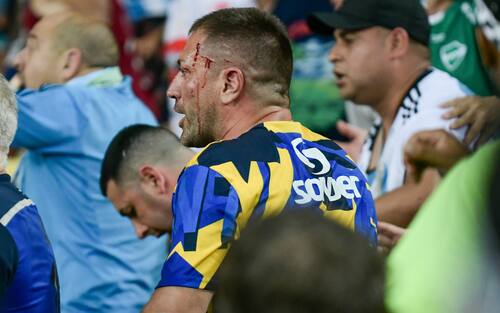 - Data la situazione, i giocatori argentini hanno lasciato il campo dirigendosi verso il luogo degli incidenti, mentre diversi spettatori argentini sono entrati nel terreno di gioco in cerca di protezione dalla repressione degli agenti.