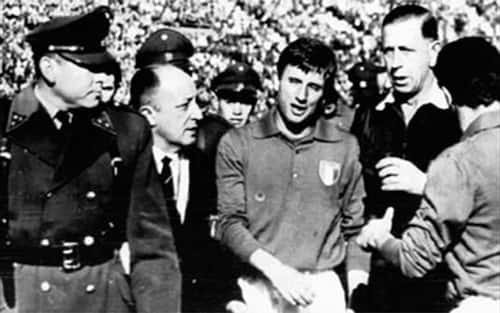 Altrimenti nota come la "Battaglia di Santiago", incontro durissimo preceduto da alcuni articoli della stampa italiana sulla situazione precaria di Santiago del Cile dopo il terremoto. Rivalità alimentata dalla presenza di oriundi azzurri (Sivori e Maschio) e dall'arbitraggio dell’inglese Aston (espulsi Ferrini e David). Terminerà 2-0 per i cileni, qualificati a differenza degli Azzurri eliminati dal Mondiale