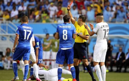 - Mondiali 2014: in campo dal 1' contro l'Uruguay, espulso al 59' per questo fallo su Arevalo Rios