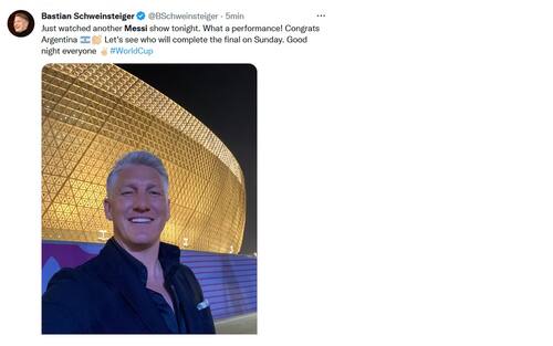 - E poi gli ex avversari. Bastian Schweinsteiger, in campo nella finale del 2014 vinta dalla Germania contro l'Argentina, fa i complimenti all'Argentina dopo aver assistito a "un altro show di Messi"