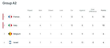 - Se la Nazionale con più punti di ogni Lega dovesse essere già qualificata, infatti, il posto sarà assegnato alla vincitrice del gruppo di Nations successivamente piazzata meglio, in una classifica generale che prende in considerazione solo le prime classificate nel girone di Nations. Ecco perché la sconfitta per 3-1 nell’ultimo match con la Francia ha complicato le cose: i 4 posti “via-Nations” per i playoff sono ad oggi di Spagna, Germania, Portogallo e Francia, e poi a scendere delle vincenti delle altre leghe B, C e D.