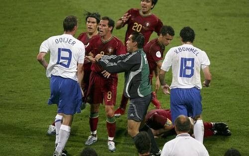 - È passato alla storia così l'ottavo di finale tra Olanda e Portogallo del Mondiale 2006. Il record assoluto di cartellini è qui: sedici! Undici ammonizioni e cinque espulsioni (tutte per doppio giallo). Non finirono la partita (vinta 1-0 dal Portogallo di Scolari) Costinha e Deco da una parte più Boulahrouz e Van Bronckhorst nell'Olanda di Van Basten