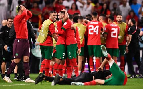 - Primo nel girone davanti alla Croazia, il Marocco è capace di battere ed eliminare il Belgio della Generazione d’Oro. La nazionale di Hakimi, Amrabat, Sabiri, Ziyech, El-Nesyri e Cheddira trova negli ottavi la Spagna e la elimina ai rigori. Protagonista il portiere Bounou che neutralizza gli spagnoli. E' la quarta nazionale africana nella storia dei mondiali a raggiungere i quarti di finale: come il Camerun a Italia '90, il Senegal a Corea e Giappone 2002 e il Ghana a Sudafrica 2010