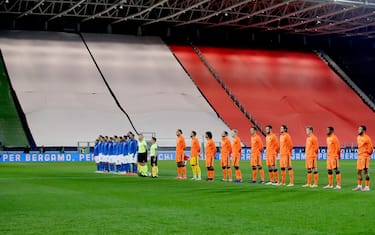Italia e Olanda, impegnate al Gewiss Stadium nella sfida di Nations League, hanno reso omaggio alla città di Bergamo con un minuto di raccoglimento per le tante vittime del Covid-19 e un grande Tricolore in Curva Nord. Tra i mille presenti in tribuna una delegazione di medici e infermieri degli ospedali Papa Giovanni XXIII e Humanitas e dei 243 sindaci della provincia lombarda.