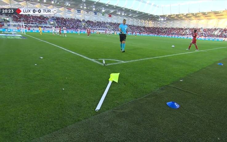 videoL'episodio si è verificato durante la gara di Nations League tra Lussemburgo e Turchia: il difensore, in scivolata, travolge completamente la bandierina