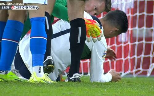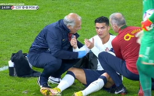 Un contrasto al 14' del match tra Repubblica Ceca e Portogallo è costato caro all'attaccante del Manchester United, sanguinante al naso e rimasto a terra per qualche minuto. Nonostante ciò, CR7 sembra essersi ripreso e ha deciso di rimanere in campo. Con un pizzico però di paura: su un altro pallone aereo ha causato un rigore con un fallo di mano, dettato probabilmente dall'istinto di proteggere il setto nasale da un nuovo colpo