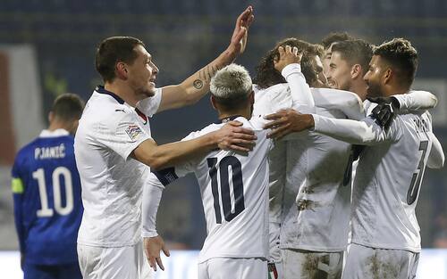 IL RITORNO IN CAMPO - Il 4 settembre inizia la Nations League per la squadra di Mancini, ripartenza dopo quasi 10 mesi di stop che interrompe a 11 la striscia di vittorie consecutive. Al Franchi termina 1-1 contro la Bosnia, avanti con Dzeko e raggiunta da Sensi, ma non riesce la rimonta nel finale. "Il risultato non cambia i giudizi - dice Mancini al termine del match -, i ragazzi hanno fatto bene nonostante la stanchezza"