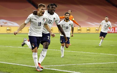IMPRESA IN OLANDA, ZANIOLO KO - Tre giorni più tardi è già scontro diretto ad Amsterdam, sfida che l'Italia domina e vince: decide Barella di testa, tante le occasioni non sfruttate ma i tre punti sono meritatissimi. L’unica nota dolente è legata all'infortunio di Zaniolo, diagnosi che conferma la rottura del legamento crociato del ginocchio sinistro (a gennaio si era rotto il destro). Il commento del Ct sulla partita: "Squadra straordinaria, Locatelli all’esordio? Pensiamo sia un grande giocatore che può migliorare"