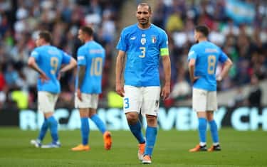 Addio amaro alla Nazionale per Giorgio Chiellini. Nella notte di Wembley, quella della presenza numero 117 in azzurro dell'ormai ex difensore della Juventus, l'Italia perde per 3-0 la "Finalissima" contro l'Argentina. La partita di Chiellini è durata 45 minuti, quelli trascorsi prima della sostituzione con Lazzari nell'intervallo. "Sapevamo che sarebbe stato difficile avevamo la speranza di vincere questa partita e questo trofeo ma non cancelliamo quello che è stato - spiega con riferimento all'Europeo vinto nella scorsa estate - mi aspetto un periodo difficile, dobbiamo essere uniti e abbiamo bisogno di ripartire stando vicini a questo gruppo".