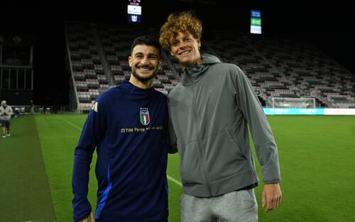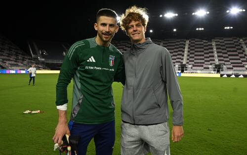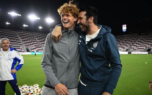 Ospite speciale per l'Italia a margine del primo allenamento negli Stati Uniti. È Jannik Sinner, impegnato in Florida nel Masters 1000 di Miami. Tante foto e sorrisi tra il tennista e il CT Spalletti che lo prende a esempio di fronte alla squadra: "Facile parlare di autodisciplina e motivazioni, basta prendere un pezzetto di lui". E Buffon aggiunge: "Ti seguiamo sempre con grande orgoglio, è bello. Anche i miei figli ti seguono, tutti parlano di tennis. È bellissimo"