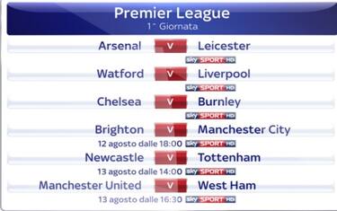 Riparte la grande magia della Premier League. Dopo l'anticipo tra Arsenal e Leicester, fari puntati sulle pretendenti al titolo: in tanti andranno a caccia del titolo conquistato nell’ultima stagione dal Chelsea di Antonio Conte. Dalla voglia di riscatto delle due squadre di Manchester, sono stati grandi i rinforzi per lo United di José Mourinho e per il City di Pep Guardiola, a quella dell’Arsenal di Arsene Wenger (che ha già messo al sicuro il primo trofeo stagionale). Senza dimenticare le "piccole" che garantiscono sempre sorprese. Il Leicester insegna. Ecco gli appuntamenti tv per questa prima giornata: