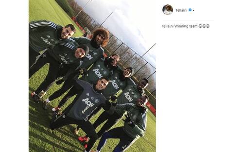 Con i compagni di squadra dello United, allenati da José Mourinho (foto da Instagram)