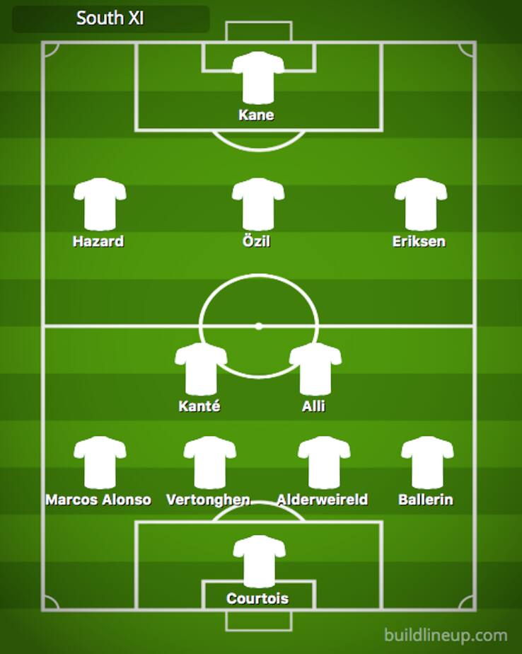 Eleganza e classe, e anche un po’ di anarchia, quella che del Regno Unito ne cantavano i Sex Pistols. E che spettacolo vedere insieme un terzetto di rifinitori così. Tutti alle spalle di Harry Kane, che sta bruciando record su record tra Inghilterra e Europa. L’undici titolare è quello diviso verosimilmente tra le sole big three di Londra. Una città che sta però perdendo il derby nazionale in Premier con Manchester (e metà Liverpool). Spurs, Blues e Gunners sono in fila, una dietro l’altra: ma dal quarto al sesto posto. Eppure in campo ci sarebbe comunque da divertirsi, con finalizzatori anche come Aubameyang, Morata o il Chicharito Hernandez. A centrocampo invece gente come Alli, Fabregas, Kanté o Mkhitaryan. Una difesa niente male tra le punizioni di Alonso e la velocità di Ballerin sulle due fasce. E una porta protetta da Courtois. A sensazione? Sembra comunque più forte il nord.
