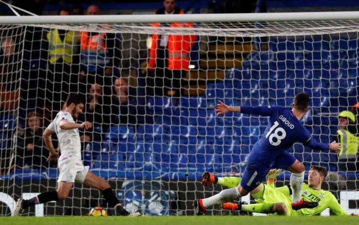 Antonio Conte sceglie Giroud al centro del suo attacco e opta per Zappacosta e non Moses sulla corsia esterna. Il Chelsea fa la partita e prende campo fin dai primi minuti, rendendosi subito pericoloso con il centravanti ex Arsenal che non trova per pochissimo la deviazione vincente sul cross di Kanté. I Blues continuano a pressare ma rischiano di incassare il gol di Townsend, bravo nella girata al volo da fuori area e impreciso di qualche centimetro. Il Crystal Palace sembra prendere le misure agli avversari, ma al 25’ subisce la rete dell’1-0. La firma è di Willian che si accentra dal lato sinistro e tira dai 20 metri, trovando una piccola deviazione di Kelly che fa sbattere la palla sul palo e si infila in rete. Passano sette giri di lancette e il Chelsea trova anche il raddoppio. Bellissima l’azione che si sviluppa su tutto il campo, conclusa dall’assist di Hazard per Zappacosta. La conclusione incrociata dell’italiano trova il salvataggio sulla linea di Kelly che poi, sfortunato, prende in testa il suo portiere e la palla gli risbatte sul ginocchio prima di finire in porta per l’autogol del 2-0. I padroni di casa, forti del doppio vantaggio, iniziano a divertirsi andando alla ricerca del 3-0. Particolarmente ispirati Willian e Hazard che mettono in affanno la difesa di Hogdson, non riuscendo a trovare però il gol del definitivo ko. Allo scadere della prima frazione di gioco è Giroud ad avere una clamorosa opportunità per infilare il tris da pochi passi, ma Tomkins manda miracolosamente in angolo con il polpaccio. Dal corner successivo altra chance per Zappacosta, ma questa volta è Hennessey a dire di no al terzino azzurro.