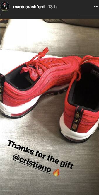 L'attaccante inglese ha ringraziato sui social CR7 per avergli spedito personalmente la riedizione delle Nike Air Max 97, personalizzate dallo stesso fenomeno del Real Madrid