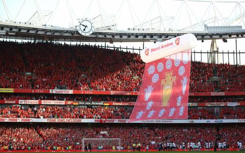 Le magliette con la scritta "Merci Arsene" sono state distribuite su ogni singolo seggiolino dello stadio, per una coreografia unica e un omaggio senza dubbio speciale