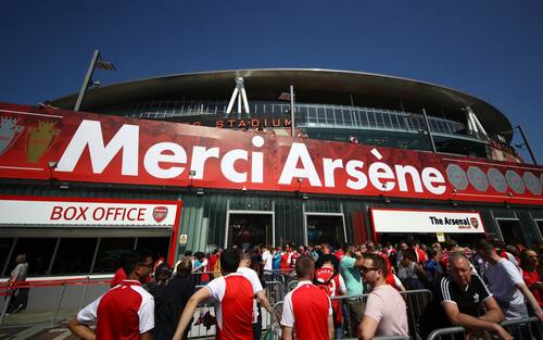 Il ringraziamento per Wenger di tutto l'Emirates è scritto a caratteri cubitali anche fuori dallo stadio. La scritta "Merci Arsene", slogan della giornata, accoglie i tifosi all'ingresso per la partita