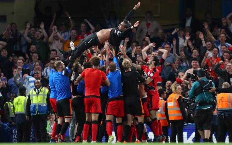 Il Chelsea ieri non è andato oltre l'1-1 contro l'Huddersfield, sprecando una grossa possibilità di restare aggrappato al sogno Champions. Ora la strada per la formazione di Antonio Conte è tutta in salita e molto dipenderà dai risultati del Liverpool. Il punto di ieri però ha permesso agli ospiti di centrare la salvezza con un turno di anticipo, un traguardo fantastico per l'allenatore, David Wagner, che ha voluto premiare i suoi concedendo loro 48 ore di sbornia. "I ragazzi hanno deciso di tornare tornare in pullman in modo da poter avere qualche birra, quindi abbiamo cancellato il nostro volo di ritorno - ha dichiarato il manager dei Terriers -. Faremo tutto ciò che vogliono loro per i prossimi due giorni, quindi giocheremo con la mente libera nel match finale (contro l'Arsenal ndr) e daremo ad Arsene Wenger tutta l'attenzione che merita". "I giocatori mi hanno fatto festeggiato sul campo facendomi saltare in aria e sono caduti i miei pantaloni, quindi spero che la scena non sia stata trasmessa in tv" ha poi scherzato Wagner, aggiungendo: "È incredibile aver raggiunto questo risultato e ci siamo riusciti facendo tutto da soli. Non abbiamo fatto affidamento su nessun altro per aiutarci. È un successo ancora più grande della promozione conquistata la scorsa stagione. L'anno scorso ci aspettavamo di retrocedere e invece siamo stati promossi, mentre in questa stagione pensavo che saremmo retrocessi con ampio margine. Lavoriamo in condizioni nettamente diverse rispetto al contesto del campionato, ma il dna dell'Huddersfield è caratterizzato da passione, desiderio e ambizione".