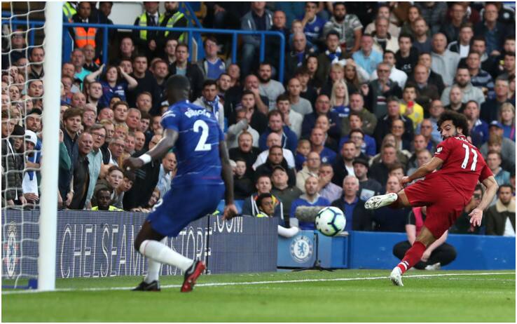 Entrambi gli allenatori fanno qualche cambio rispetto alla sfida di Carabao Cup. Sarri schiera la formazione tipo, con Kovacic scelto come terzo di centrocampo al fianco di Jorginho e Kanté, mentre nel ruolo di prima punta tocca a Giroud, con Morata che si accomoda in panchina. Klopp invece opta per Gomez al centro della difesa, con Milner confermato sulla linea mediana. L’attacco è quello che tanto bene ha fatto la scorsa stagione, ovvero Salah, Firmino e Mané. Le due squadre, nonostante la forza dell’avversario, non rinunciano alla propria filosofia di gioco, ma è il Liverpool a farsi preferire nel primo periodo. Uno dei più attivi tra gli ospiti è Momo Salah, inizialmente in palleggio su tutto il fronte offensivo, poi cercato spesso sul lato destro dove riesce a costruirsi due ottime opportunità da gol. La mattonella è quella a lui congeniale, ma il classico mancino a giro non riesce: prima è debole e centrale, poi completamente svirgolato con la sfera che finisce a lato. Dopo un quarto di gara si fa vedere in attacco anche il Chelsea ed è la chance che sblocca mentalmente i Blues. Da un lancio verticale di David Luiz, Willian sorprende Robertson alle spalle e si presenta a tu per tu con Alisson, ma il portiere brasiliano fa muro con il corpo e salva i suoi. Al 25’, però, l’ex Roma deve soccombere. L’azione del Chelsea si sviluppa grazie a un pregevole scambio stretto tra Kovacic e Jorginho, con il croato che lancia in verticale Hazard sul lato mancino dell’area di rigore: il numero 10 incrocia perfettamente sul palo opposto e sblocca il risultato, punendo per la seconda volta in quattro giorni la squadra di Klopp. I Reds sembrano accusare il colpo ma, passata la mezz’ora, vanno a un passo dal pari. Il ping pong sulla trequarti viene risolto dall’assist volante di Firmino, Salah brucia sullo scatto Marcos Alonso e riesce anche a superare Kepa in uscita, ma sul destro a porta vuota ci pensa Rüdiger, con un miracolo sulla linea di porta, a evitare l’1-1.