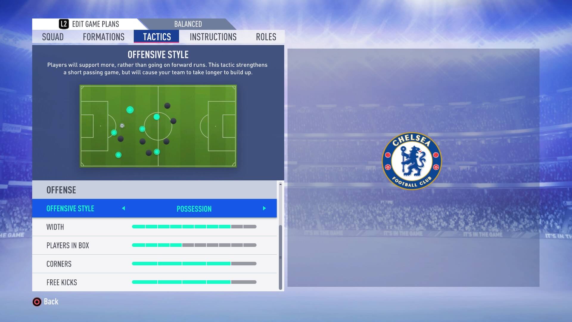 Quando le sue squadre hanno la palla, invece, Maurizio Sarri chiede un possesso di palla prolungato, ormai caratteristica tipica del suo gioco. In Stile d'attacco, quindi, bisognerà mettere proprio "Possesso palla". Diversa la gestione dell'ampiezza rispetto alla fase difensiva, quando si ha la palla gli esterni di Sarri giocano molto più larghi: bisognerà quindi mettere 8/10. Da gestire, invece, la presenza dei calciatori in attacco. Per 'giocatori in area' bisogna mettere 4/10, in modo da favorire poi l'inserimento degli altri calciatori in un secondo momento. Sui calci piazzati, invece, è consigliato mettere 4/5 per le persone da far entrare in area di rigore. Difficile riprodurre anche gli infiniti schemi di Sarri da calcio d'angolo, ma con tutte le impostazioni di FIFA 19 non bisognerà sorprendersi se qualcuno proverà a riprodurre anche quelli.
