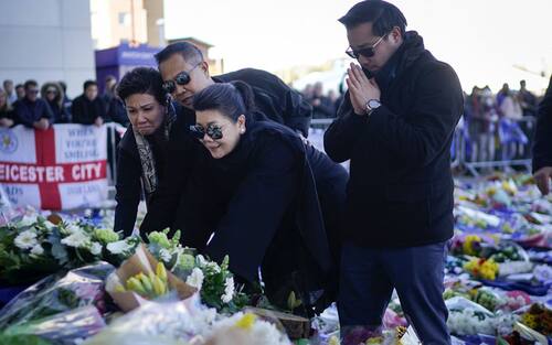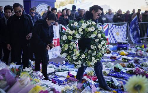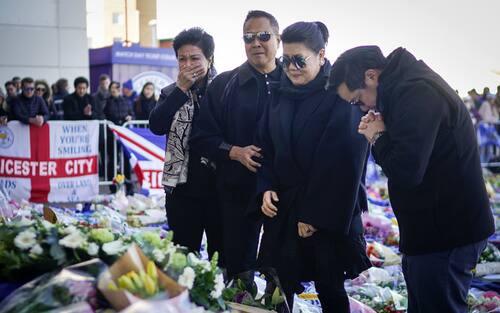 Anche i parenti del presidente Srivaddhanaprabha sono giunti sul luogo dell'incidente per omaggiarlo. La moglie e il figlio hanno deposto una corona di fiori: tantissime anche quelle lasciate dai tifosi del Leicester, accompagnate da messaggi, bandiere e sciarpe del club