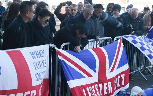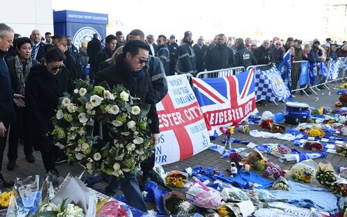 Fiori, sciarpe e messaggi lasciati dai tifosi sul luogo dell'incidente costato la vita al presidente Srivaddhanaprabha e ad altre 4 persone. Oltre alla moglie e i figli del patron thailandese, arrivati a Leicester per omaggiarlo, anche la squadra si è unita in uno straziante addio