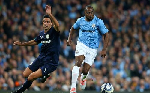 Stesso modulo anche per le PREMIER LEAGUE ALL-STARS: van der Sar (46' Given); Neville (35' Saief), Carragher, Carrick, Cole; Arteta, Butt (46' van der Vaart), Scholes, Giggs; Keane (46' Cahill), van Persie COACH: Roberto Martinez. In foto Arteta (assistente di Guardiola al City) e Vassell.
