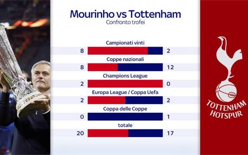 #8 NUMERI - José Mourinho, da solo, ha vinto più titoli dell'intero Tottenham.