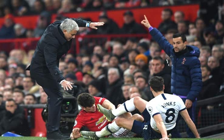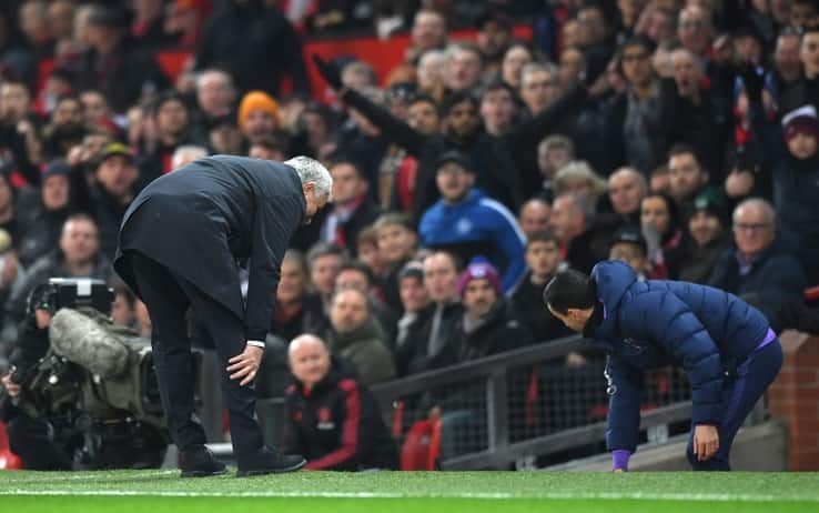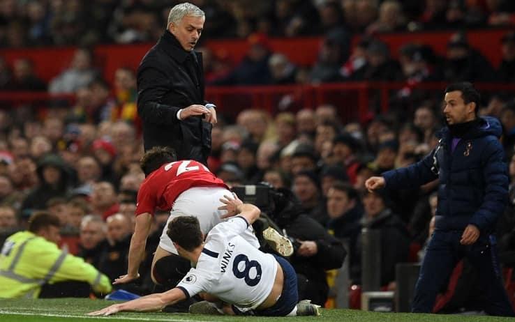 Premier LeagueRitorno da ex con contrasto incluso a Old Trafford per José Mourinho. Succede tutto al 13' del primo tempo di Manchester United-Tottenham. I Red Devils attaccano a destra, quando Daniel James è contrastato in scivolata dal centrocampista degli Spurs Harry Winks nei pressi della linea del fallo laterale. Il numero 21 dello United cade e sbatte con la testa sul ginocchio destro dello Special One. Mourinho ha accusato il colpo al ginocchio ma dopo qualche secondo ha ripreso a camminare normalmente