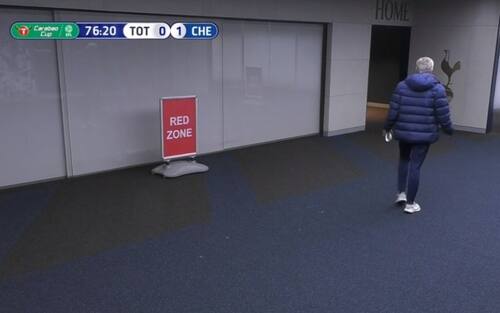Serata agitata per Mourinho e non solo per il battibecco con Lampard: lo Special One è uscito improvvisamente al 77' per richiamare Eric Dier, che era tornato negli spogliatoi per andare alla toilette (immagine DAZN)